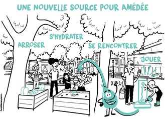 Le projet propose l'installation d'une fontaine d'eau urbaine sur la place Amédée Larrieu, un espace où des composteurs et des bacs de végétalisation ont déjà été aménagés. Avec l'augmentation des températures, une fontaine devient essentielle pour les riverains et passants. Elle servirait non seulement aux usagers des composteurs et aux bénévoles entretenant les bacs (qui contiennent des tomates, oranger, herbes aromatiques, etc.), mais aussi à réduire la consommation de bouteilles en plastique et encourager l’utilisation de gourdes réutilisables. Des modèles accessibles aux personnes à mobilité réduite et adaptés aux animaux sont également prévus.